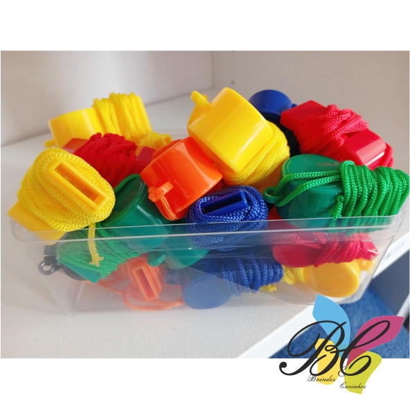 Design de apito clássico e divertido em uma ampla gama de tons brilhantes com fita de pescoço de cor correspondente.