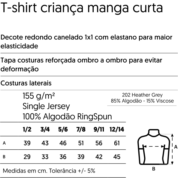 T-shirt Manga Curta.  100% Algodão  155 g/m²