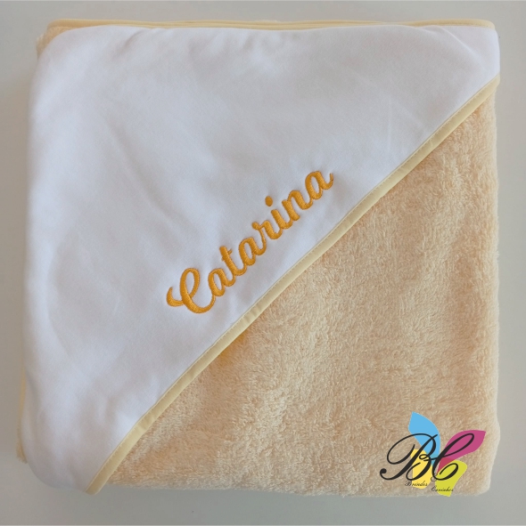 Pode escolher o tamanho, a cor da toalha, a cor do viés, a cor da letra do bordado e o nome a bordar.